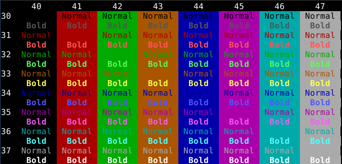 line2="${line2}${esc}${back};${fore};1m Bold ${esc}0m"